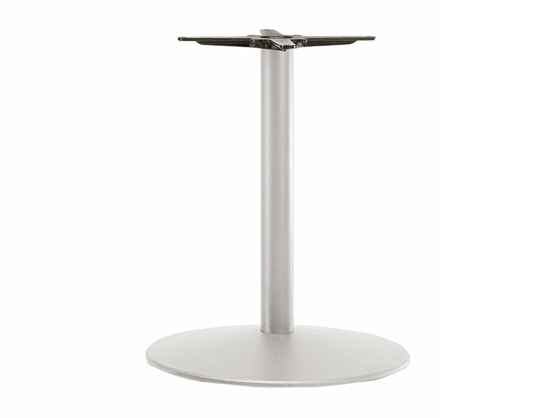 - Tafelonderstel met gezandstraald gietijzeren onderstel en stalen of eikenhouten zuil, verkrijgbaar in combinatie met bladen van verschillende afmetingen en afwerkingen.