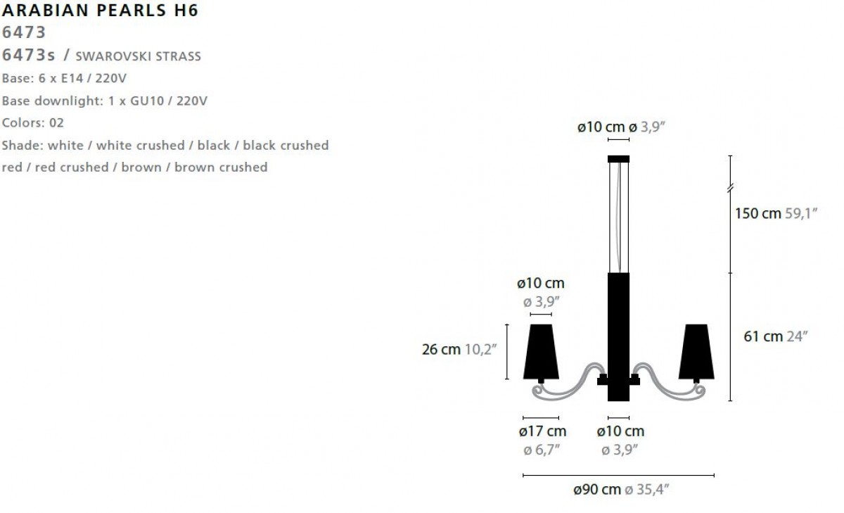 - Base: 6 x E14 / 220V / MAX. 40W