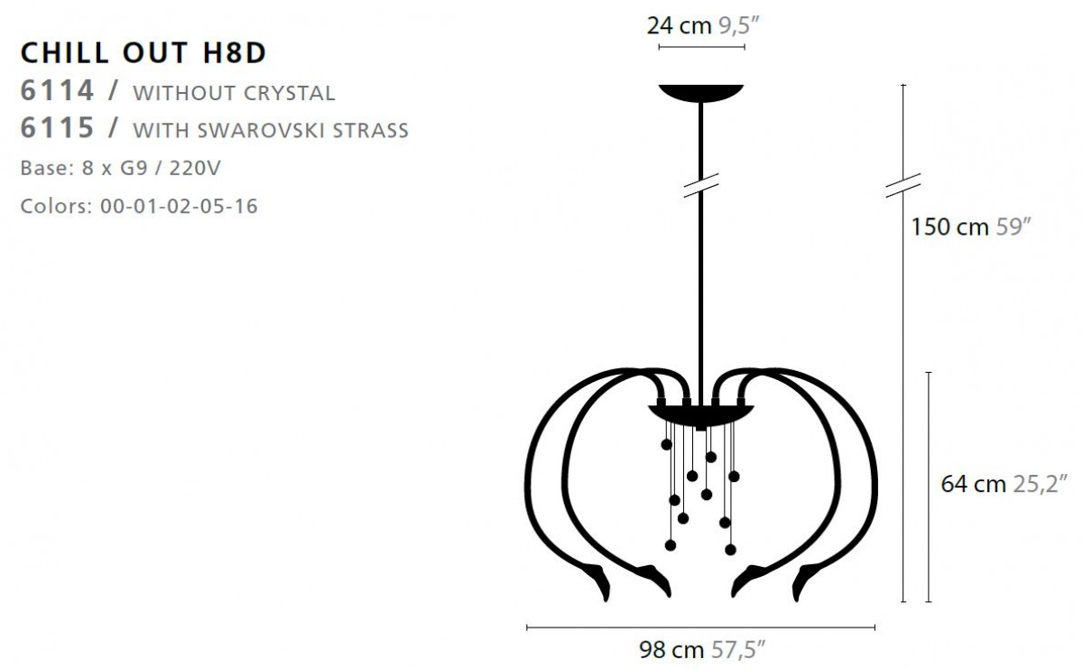 - Base: 8 x G9 / 220V / MAX. 40W