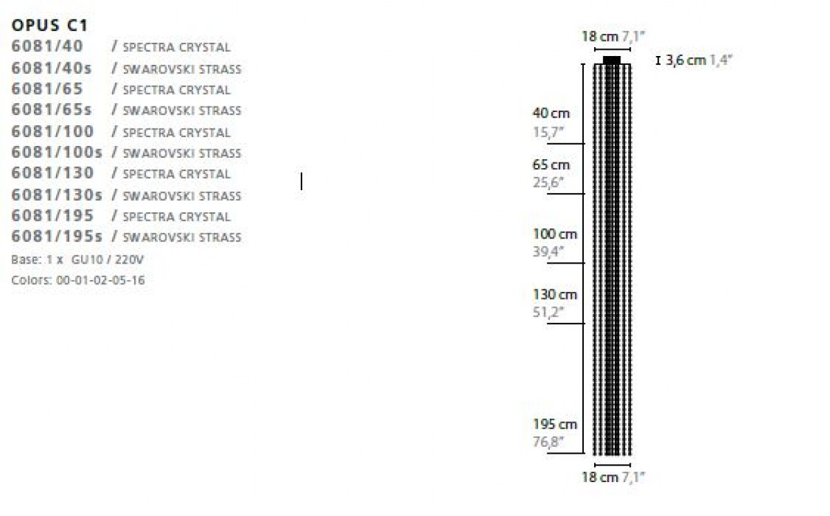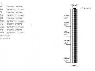 - 40 cm, 65 cm, 100 cm, 130 cm, 195 Crystal, Spectra® Crystal or Swarovski® Strass®