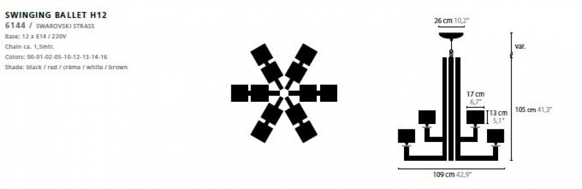 - Base: 12 x E14 / 220V / MAX. 40W