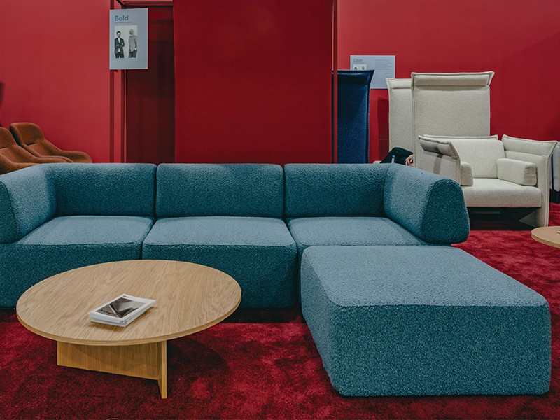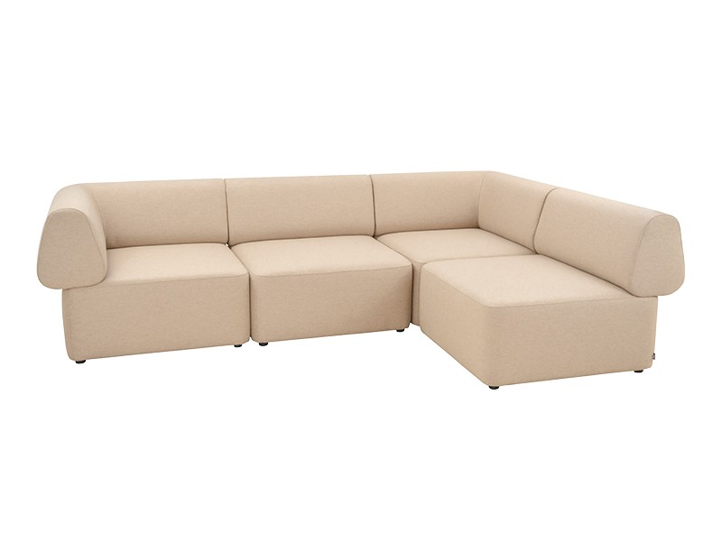- Modulair banksysteem, dat een hoekmodule, enkele module en poef omvat.