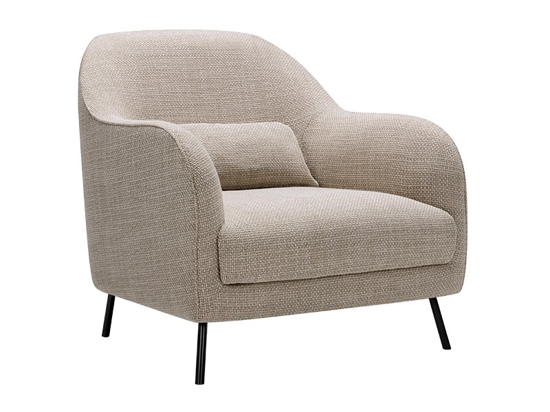 - Gestoffeerde fauteuil, verkrijgbaar met metalen of houten poten.
