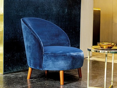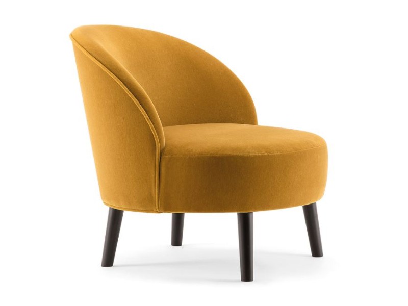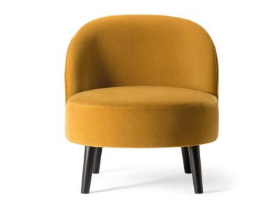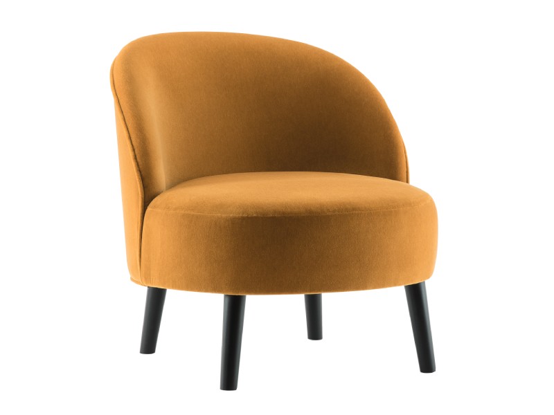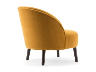 - Een naadloos aansluitende perfect ronde zitting en een sierlijk gebogen rugleuning kenmerken de Ginger loungestoel, terwijl vier robuuste conische houten poten voor stabiliteit zorgen.