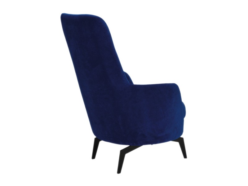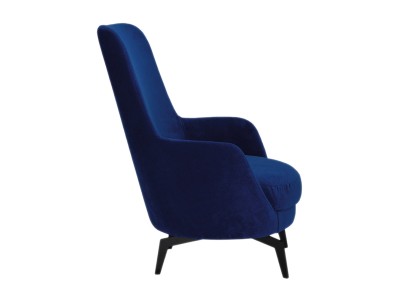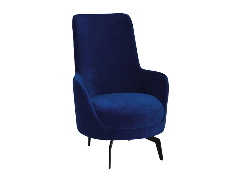 - Gestoffeerde fauteuil met hoge rugleuning en metalen frame.