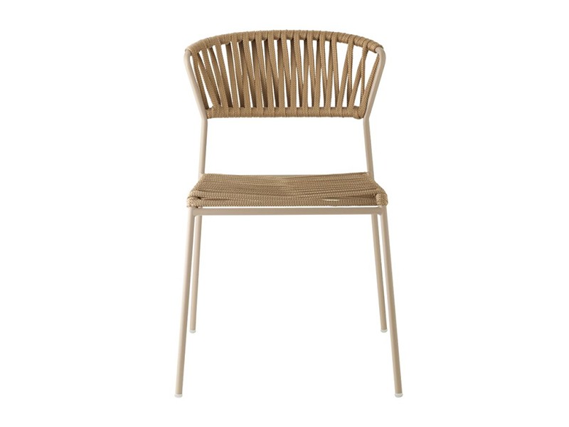 - Stoel met zitting en rugleuning van gevlochten nautisch touw.