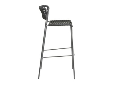 - Barstoel met zitting en rugleuning van gevlochten nautisch touw.