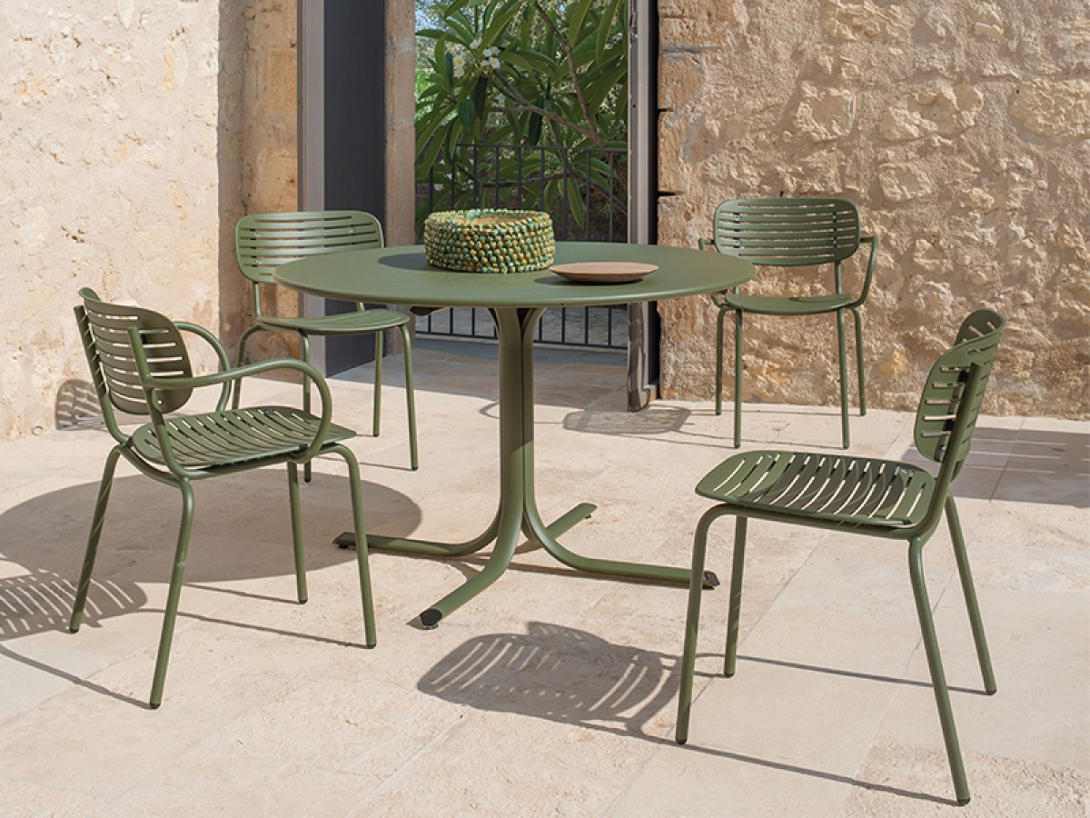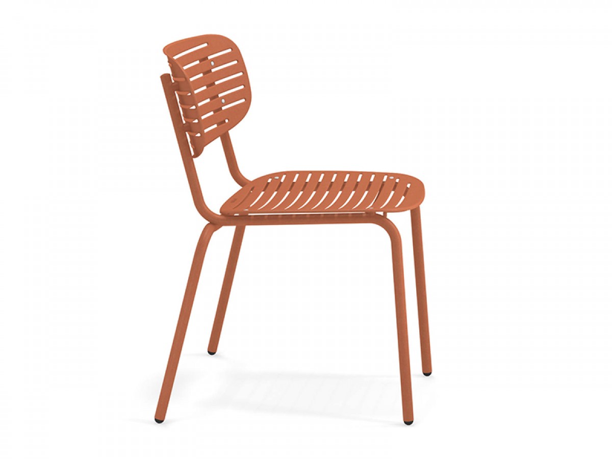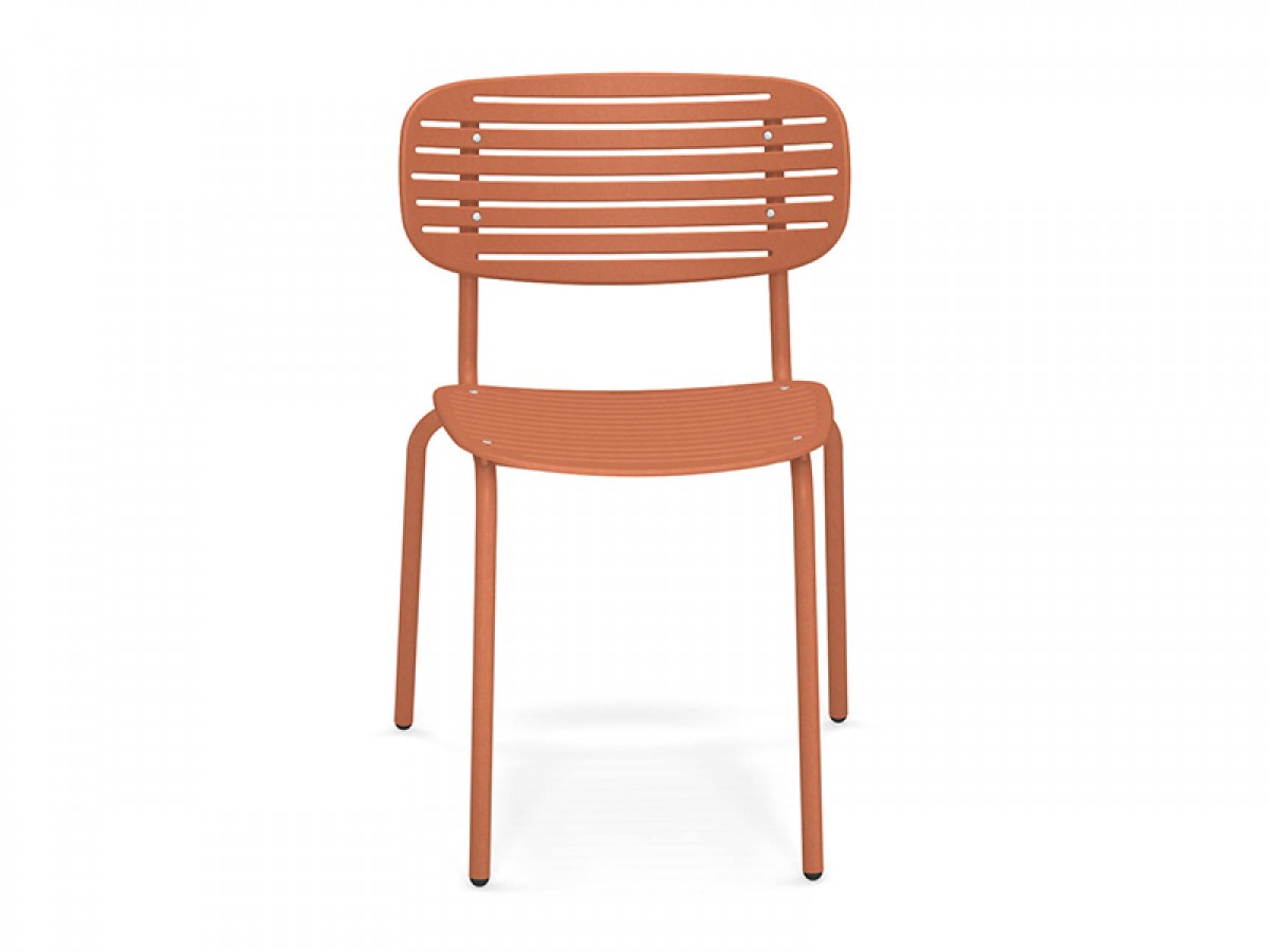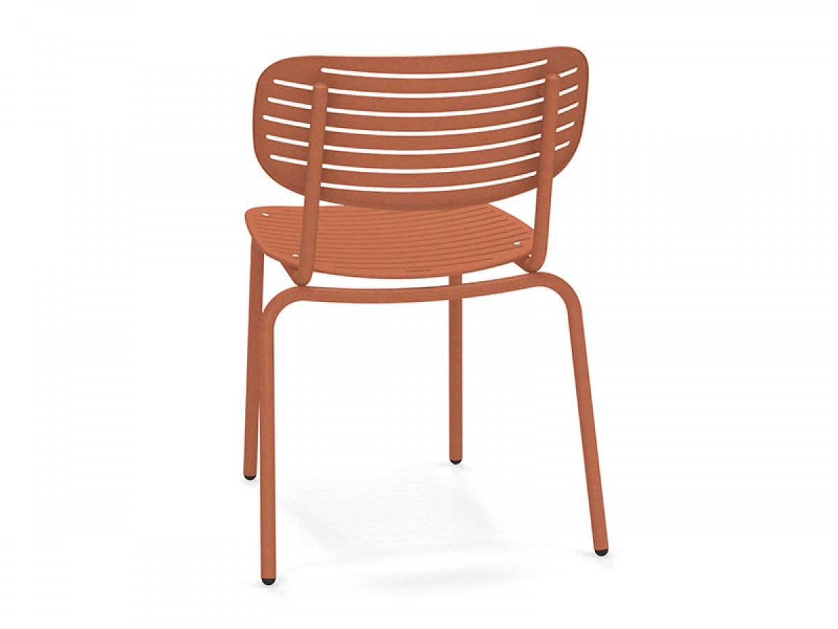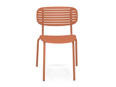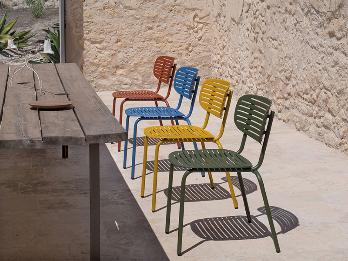 - De structuur is volledig gemaakt van Fe360 staalbuis, terwijl de zitting en rugleuning, gekenmerkt door het opvallende grafische ontwerp, zijn in diepgetrokken gegalvaniseerde staalplaat.