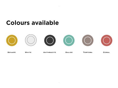 - Kleuren: wit, antraciet, koraal, senape, tortora