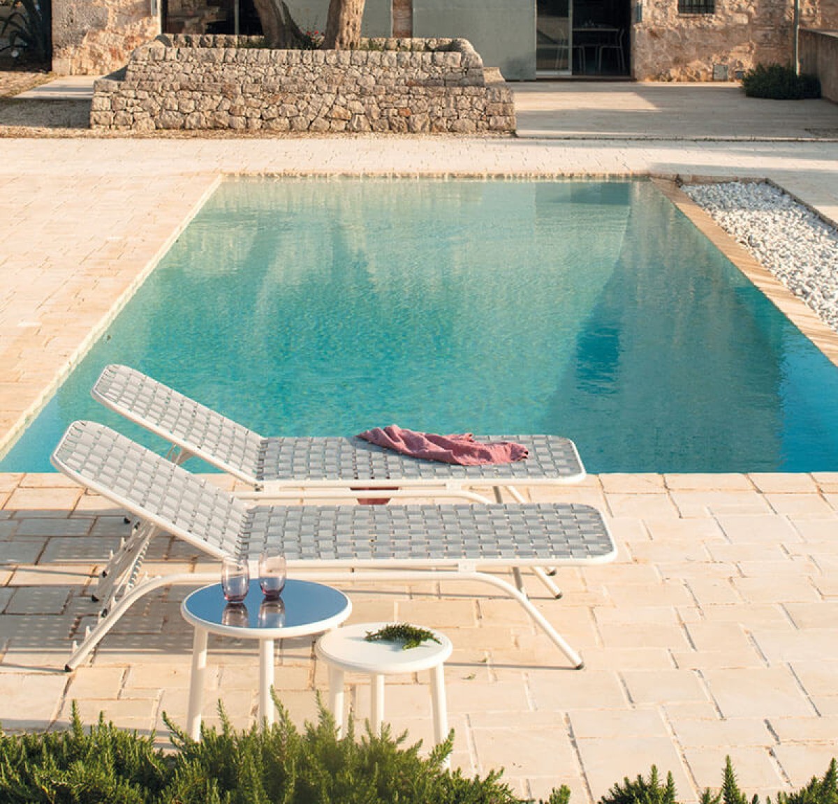 - De Geweven elastische banden, die op een innovatieve manier zijn verbonden met het geraffineerde aluminium frame, geven leven aan een collectie die wordt gekenmerkt door een uitstekende, elastische stijl en uitstekend comfort, geschikt voor buitenshuis.