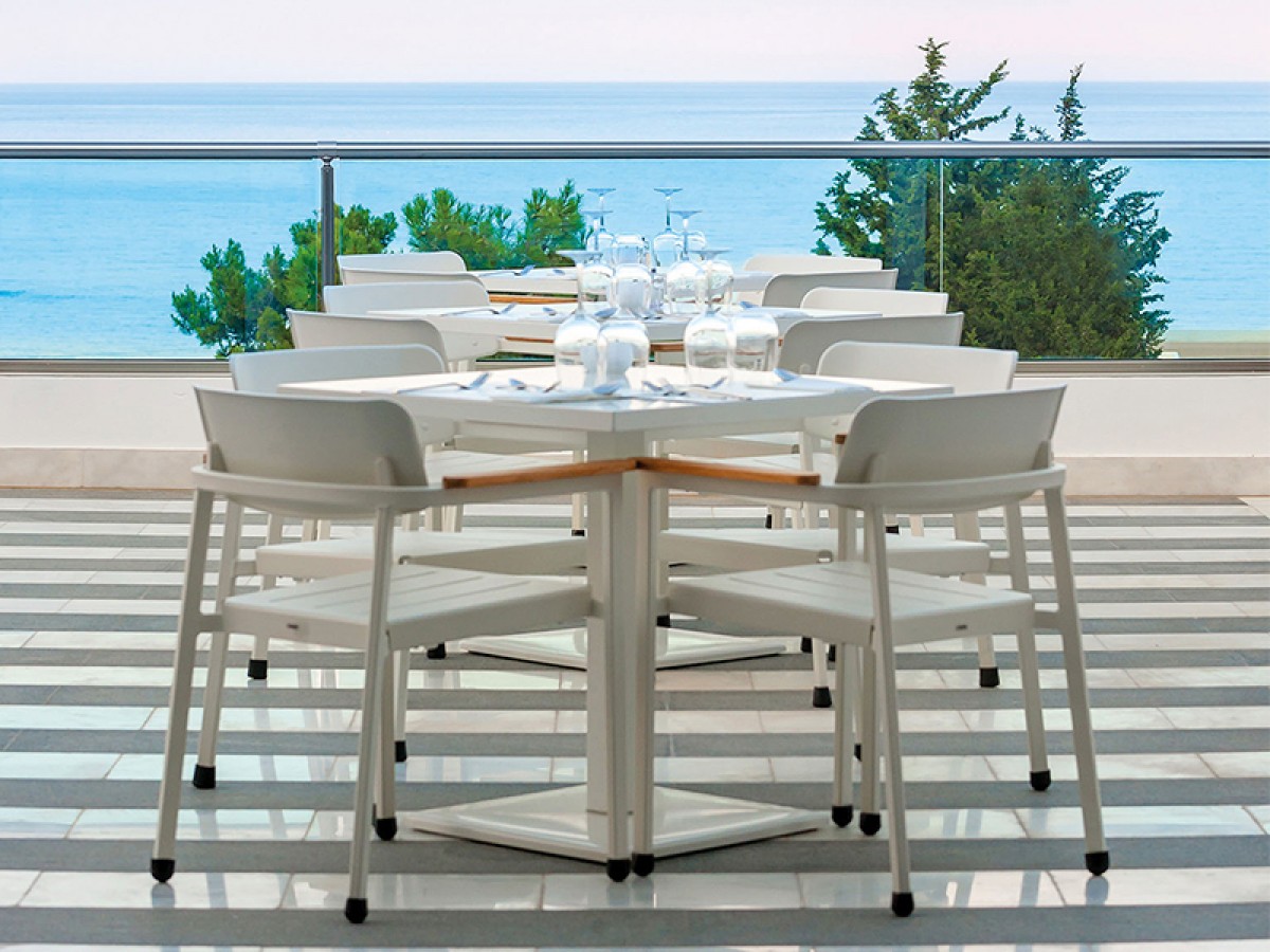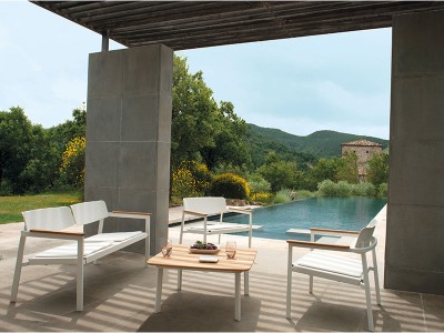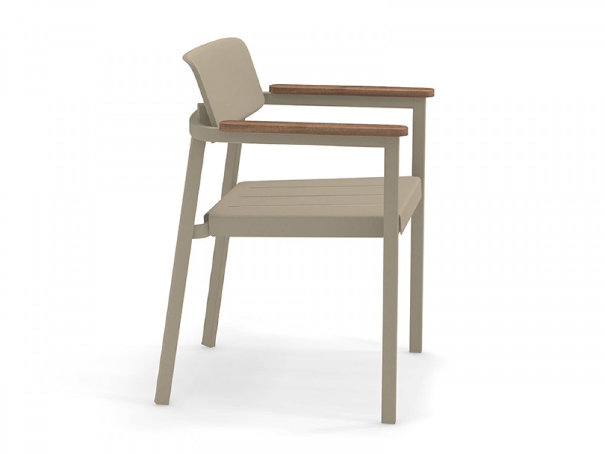 - Outdoor aluminium frame fauteuil met teak armleuningen.
