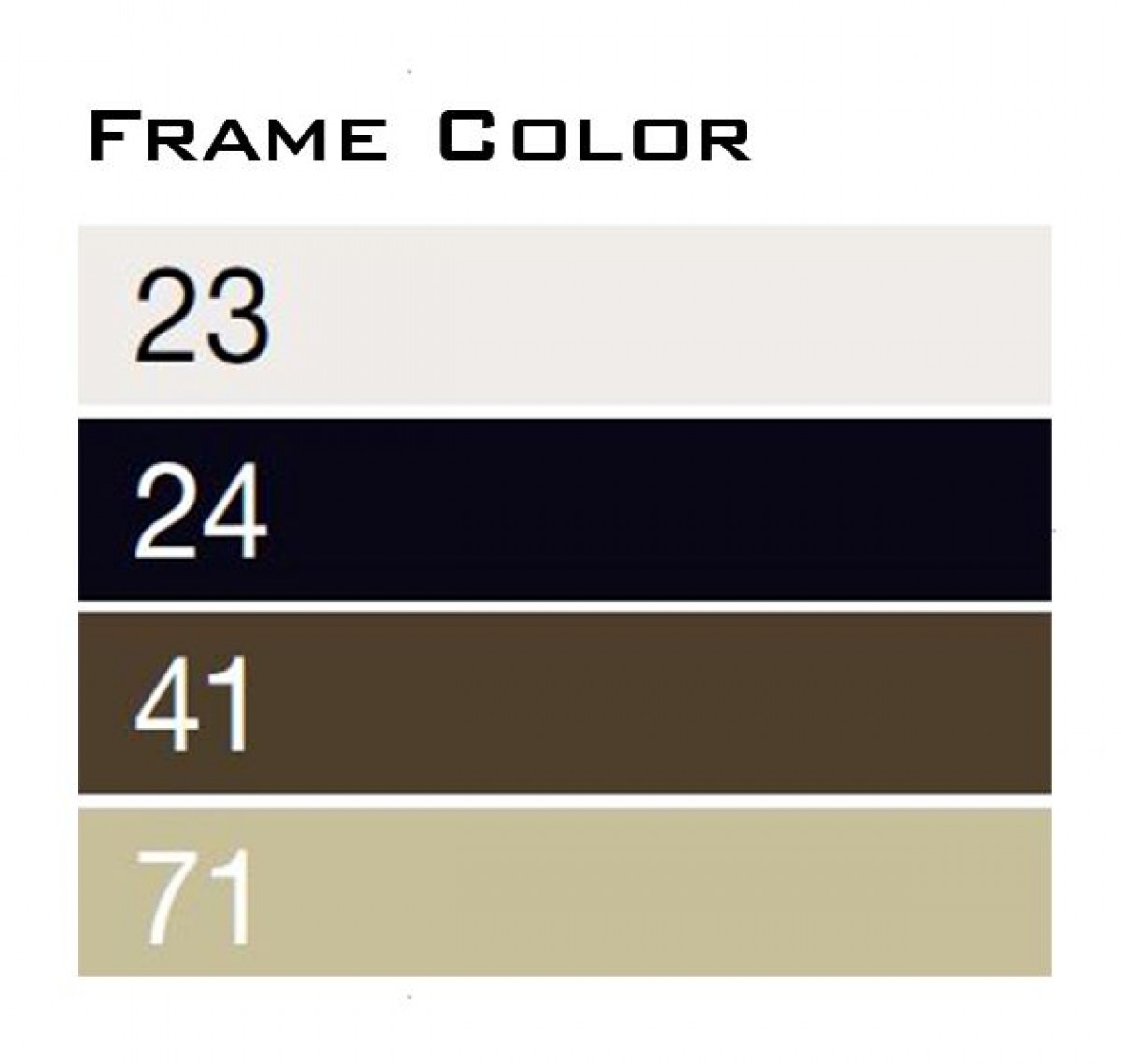 - Framekleuren: mat wit, zwart, indisch bruin, taupe,