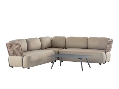 - Deze prachtige set bestaat uit twee 2-zitsbanken, een hoekstuk en een salontafel met een aluminium blad.