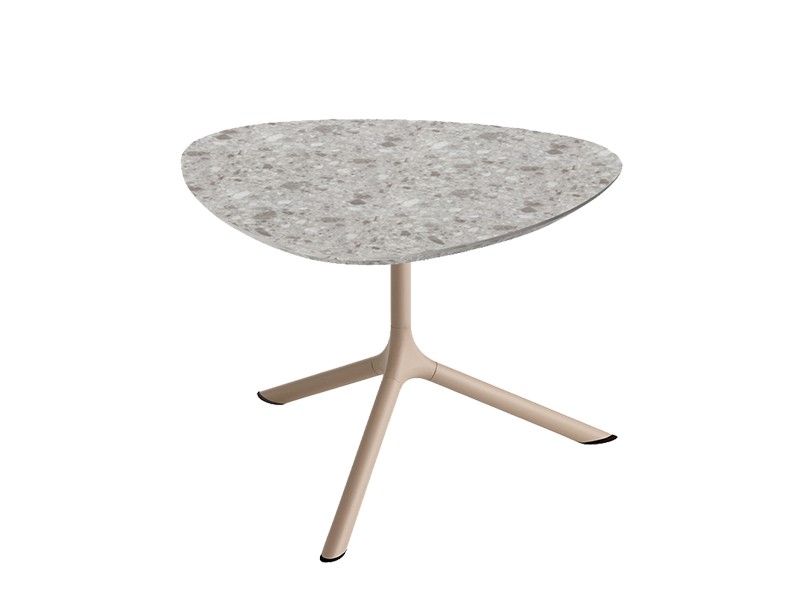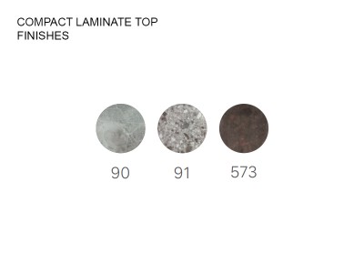 - Tafelblad in druppelvorm, afmetingen 65x65 cm, compact laminaat, dikte 10 mm, platte rand.
