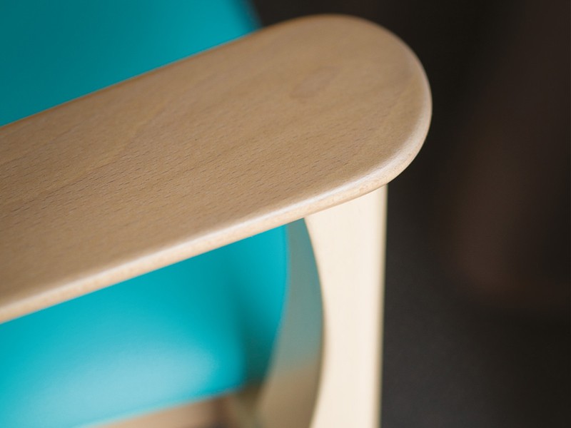 - De strakke contouren van de rugleuning en de strakke hoeken van de stoelpoten en armleuningen zorgen voor een opmerkelijk evenwicht tussen luchtigheid en robuustheid, sierlijkheid en stabiliteit.